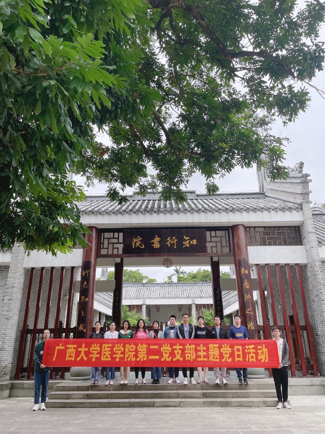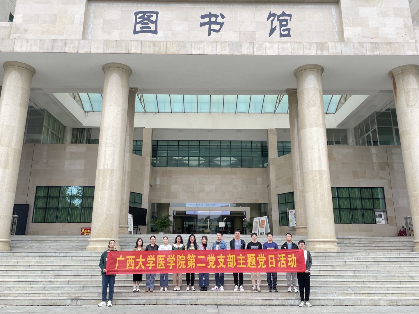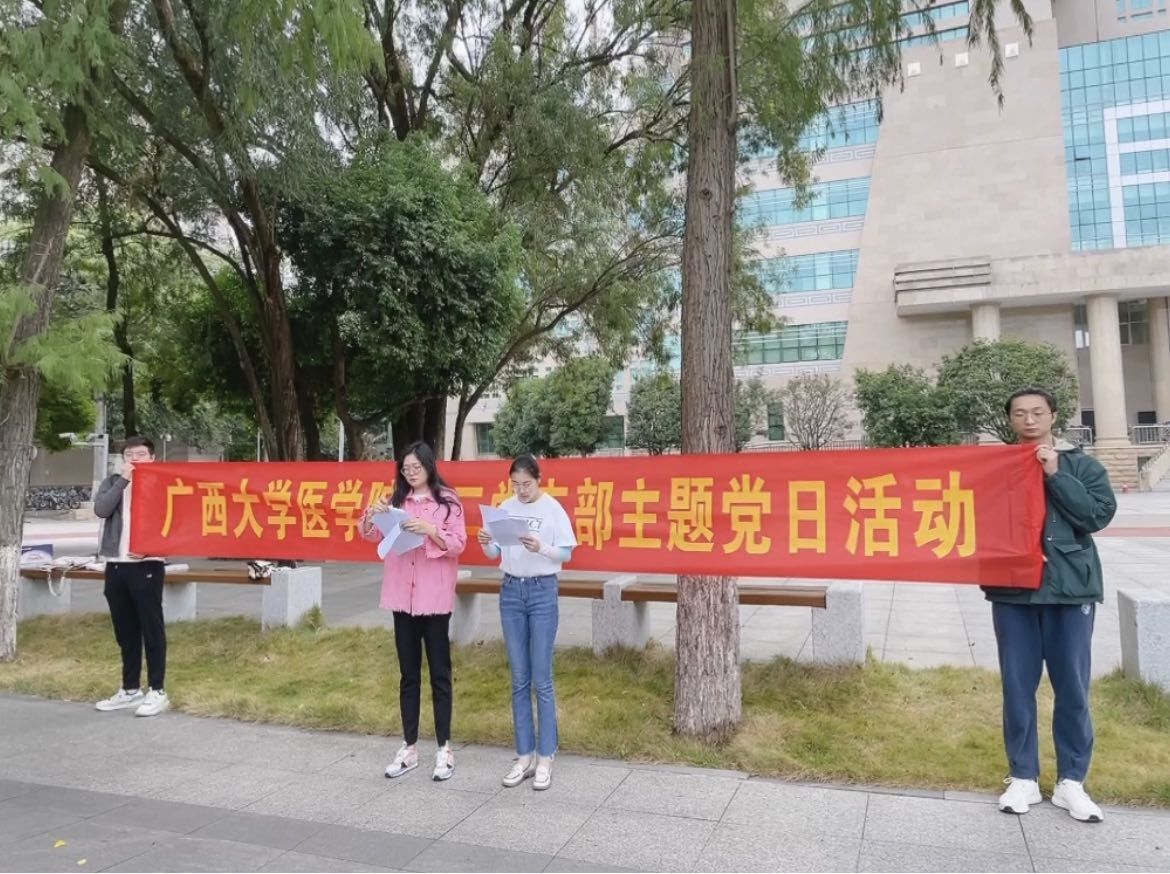 2022年11月20日,在全校深入学习宣传贯彻党的二十大之际,医学院研究生第二党支部为引导党员同志深刻学习和领会党的二十大、厚植爱党爱国情怀,激发学生党员为国家富强、民族复兴而奋斗的精神,组织开展了以“学习党的二十大、永远跟党走、奋进新征程”为主题的党日活动。党日活动分为党的二十大和新党章知识抢答、广西大学图书馆参观、劝学岛游学以及党课开讲啦四个环节。研究生第二党支部的正式党员、预备党员、发展对象和入党积极分子参加了此次党日活动。同学们纷纷表示,通过知识竞赛和互助学习,加深了对党的二十大和新党章的认识,更加坚定了为全面建设社会主义现代化国家、全面推进中华民族伟大复兴而努力学习的信心和决心。