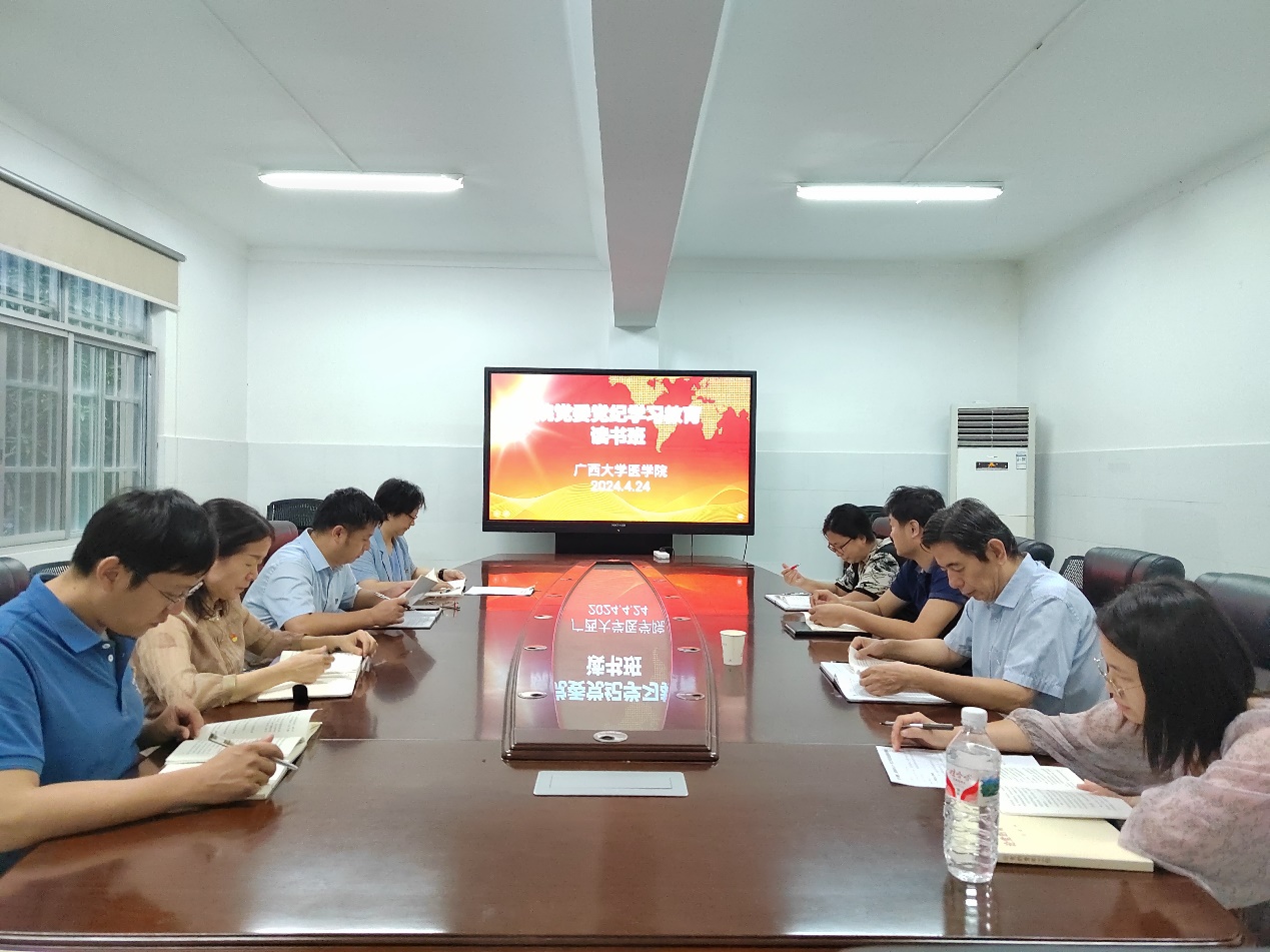 根据中央、自治区党委、学校党委关于党纪学习教育的部署要求,4月24日上午,医学院党委党纪学习教育读书班开班。院党委书记李波主持了开班式,院党委、纪委全体委员参加了读书班。
