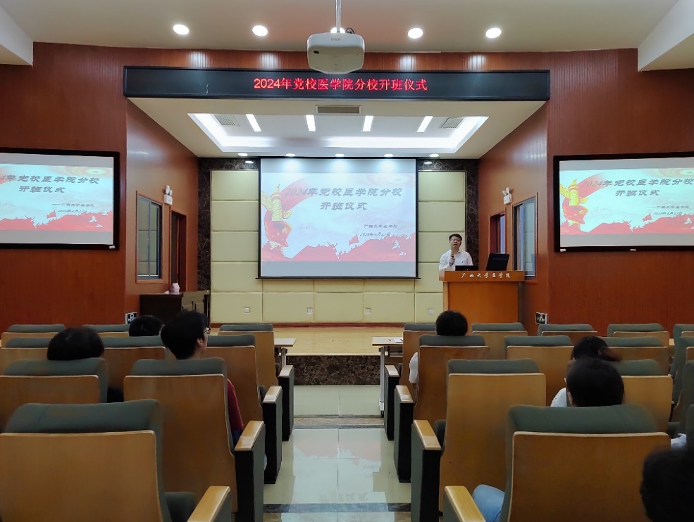 2024年4月23日下午,我院在医学院学术报告厅举行第十二期分党校开班仪式。分党校培训班全体成员、院党委书记李波老师、专职组织员张静老师参加开班仪式。