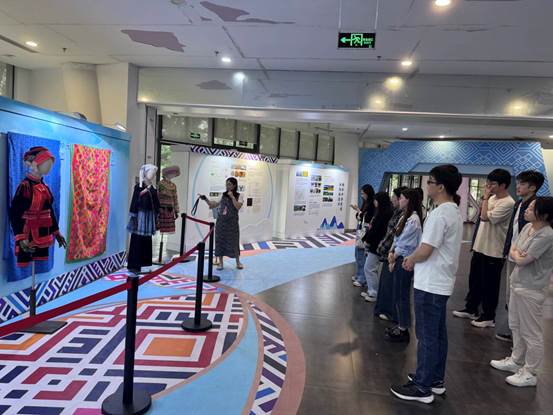 在民族服饰展区,讲解员详细解读了不同民族服饰的工艺特点与文化内涵:壮族服饰:以蓝黑为主色调,纹样多取材于自然,体现了稻作文化的特点;瑶族服饰:独特的挑花工艺和银饰,承载着族群迁徙的历史记忆;苗族银饰:繁复的银器制作技艺,彰显了对祖先智慧的传承。党员们认真聆听,不时提问,从一根丝线、一枚银扣中读懂了民族文化的深厚底蕴。