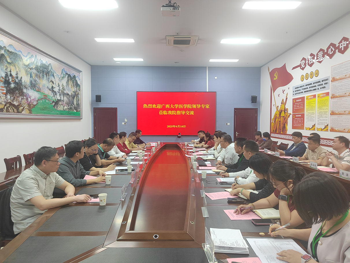414日,我院联合发展规划处、科研院南宁市第四人民医院交流座谈,院党委书记李波、学术院长罗素兰,四医院党委书记余梅、党委副书记、院长谢周华出席座谈会。