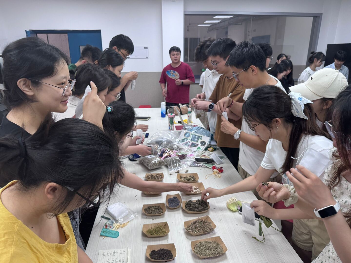 本次活动还将理论学习与党性教育深度融合,开展岐黄守正传薪火香囊制作和清风颂党创新篇的非遗漆扇创作实践活动。以药香迎端午,岐黄守初心为主题,通过讲解端午佩戴香囊的历史渊源和中医药文化内涵,引导党员深刻理解守正传薪火的时代意义。党员们通过辨识艾草、菖蒲、藿香等药材,亲手填装香囊,在药香氤氲中感受中医药文化的博大精深,进一步坚定了传承与创新的使命担当。