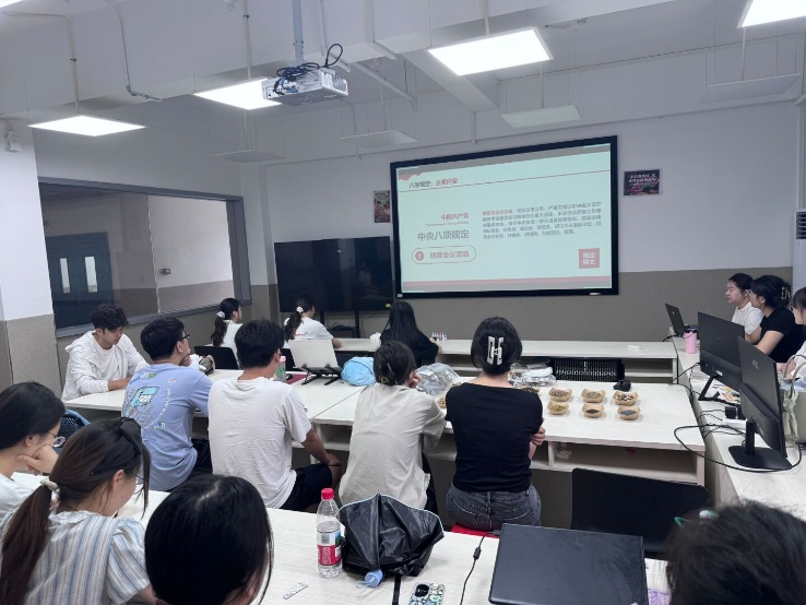 活动伊始,支部书记以《弘扬优良作风,永葆政治本色——锲而不舍落实中央八项规定精神》为题领学了作风建设的重要性,以案说纪警示党员同志筑牢纪律防线和强化作风建设。支部成员结合学习体会展开热烈讨论,认真查摆问题。会议强调,研究生党员的作风建设应从小事做起,如诚信考试、诚信科研、勤俭节约和主动服务同学等,将作风建设落实到具体行动中,践行党的优良作风。