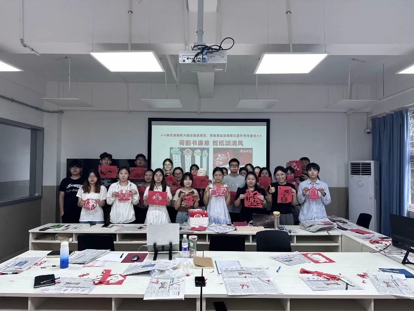 以“荷韵书廉意,剪纸送清风”为主题的廉洁标语书写和廉洁剪纸活动在荷花主题诗词鉴赏中拉开帷幕。党员们挥毫泼墨,写下“廉洁修身扬正气,诚信治学树新风”“科研如荷品自高,数据似水清见底”等特色标语,将对廉洁精神的理解融入笔墨之中。在廉洁剪纸环节,大家以刀为笔、以纸传情,精心创作了一幅幅以荷花、竹子等廉洁意象为主题的剪纸作品。栩栩如生的荷花、挺拔的翠竹跃然纸上,寓意着清正廉洁的高尚品格,强化了党员们的廉洁自律意识,
