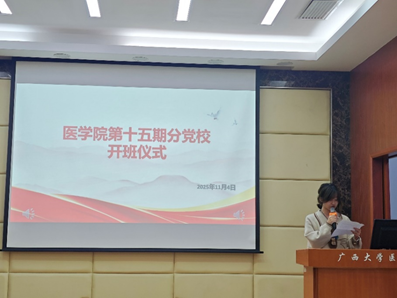 11月4日下午,医学院第十五期分党校开班仪式在学院学术报告厅举行。医学院党委书记李波、专职组织员张静出席仪式,全体入党积极分子、发展对象和预备党员培训班学员约150人参加仪式。