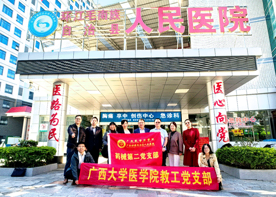 为深入学习贯彻党的二十届四中全会精神,进一步增强公众安全用药意识、普及合理用药知识,积极响应《全国科普月八桂科普大行动》的号召,学院教师党支部与自治区人民医院药械第二党支部开展支部联建活动,并共同参与了近期于河池市环江毛南族自治县人民医院举办的“合理用药科普宣传及抗菌药物的合理使用”科普活动。本次活动由广西药学会主办,英国上市公司365、自治区人民医院、广西医科大学第二附属医院及环江毛南族自治县人民医院共同承办。活动期间,医学院教师党支部党员王立升、吴黎川、颜健华、袁明清、李江峰等同志,围绕合理用药议题与现场专家及医护人员展开了深入的交流与探讨。