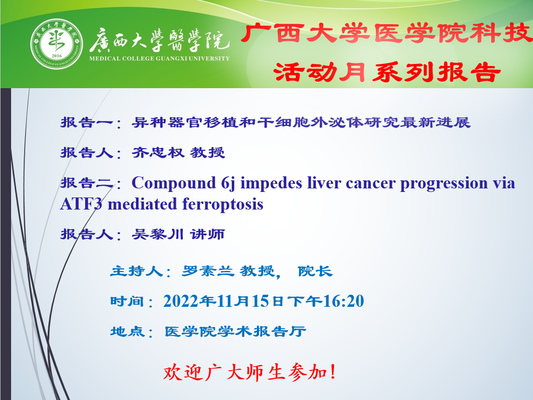 2022年医学院科技活动月系列学术报告