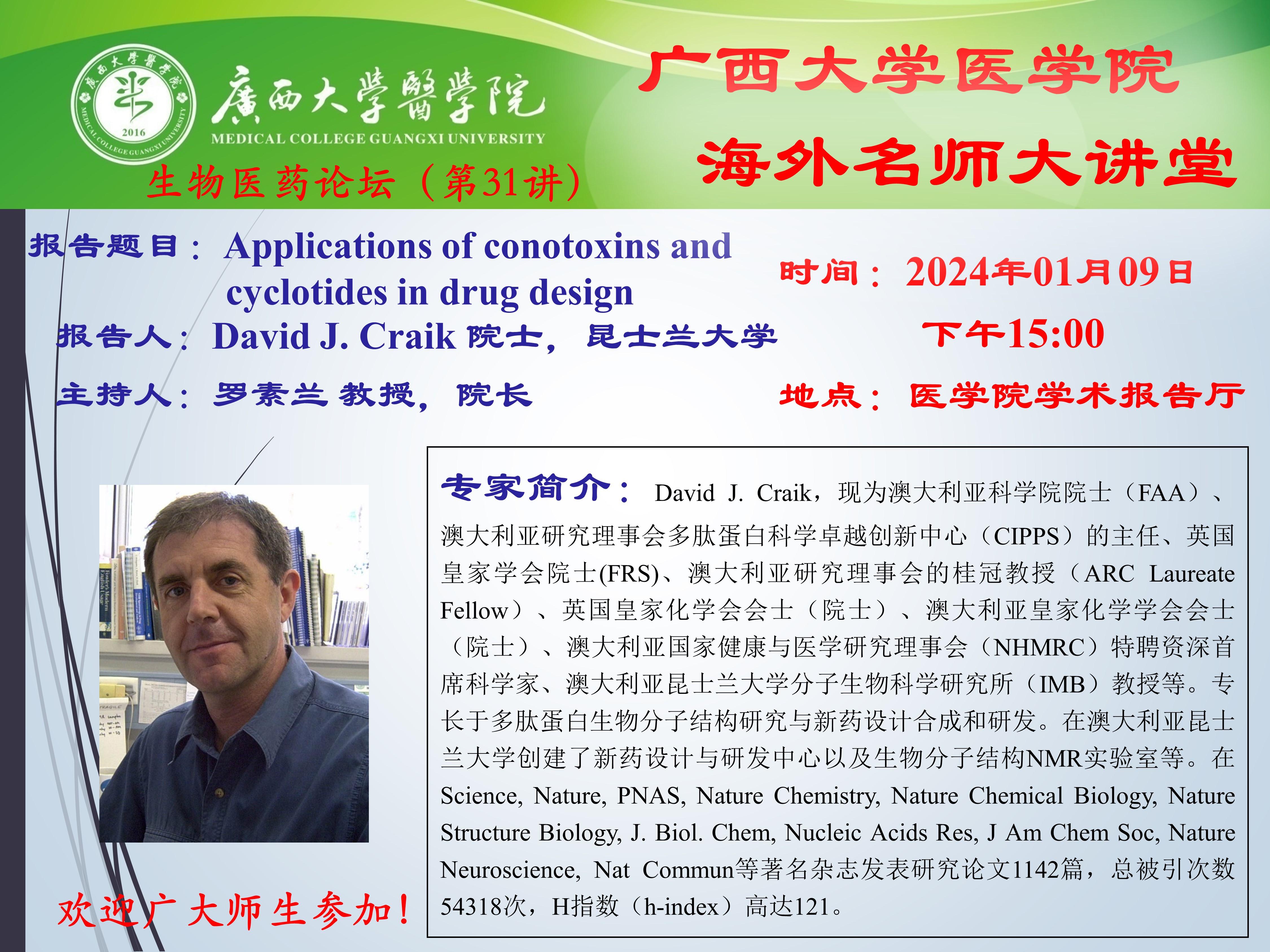 英国上市公司365生物医药论坛(第31讲):Applications of conotoxins and cyclotides in drug design