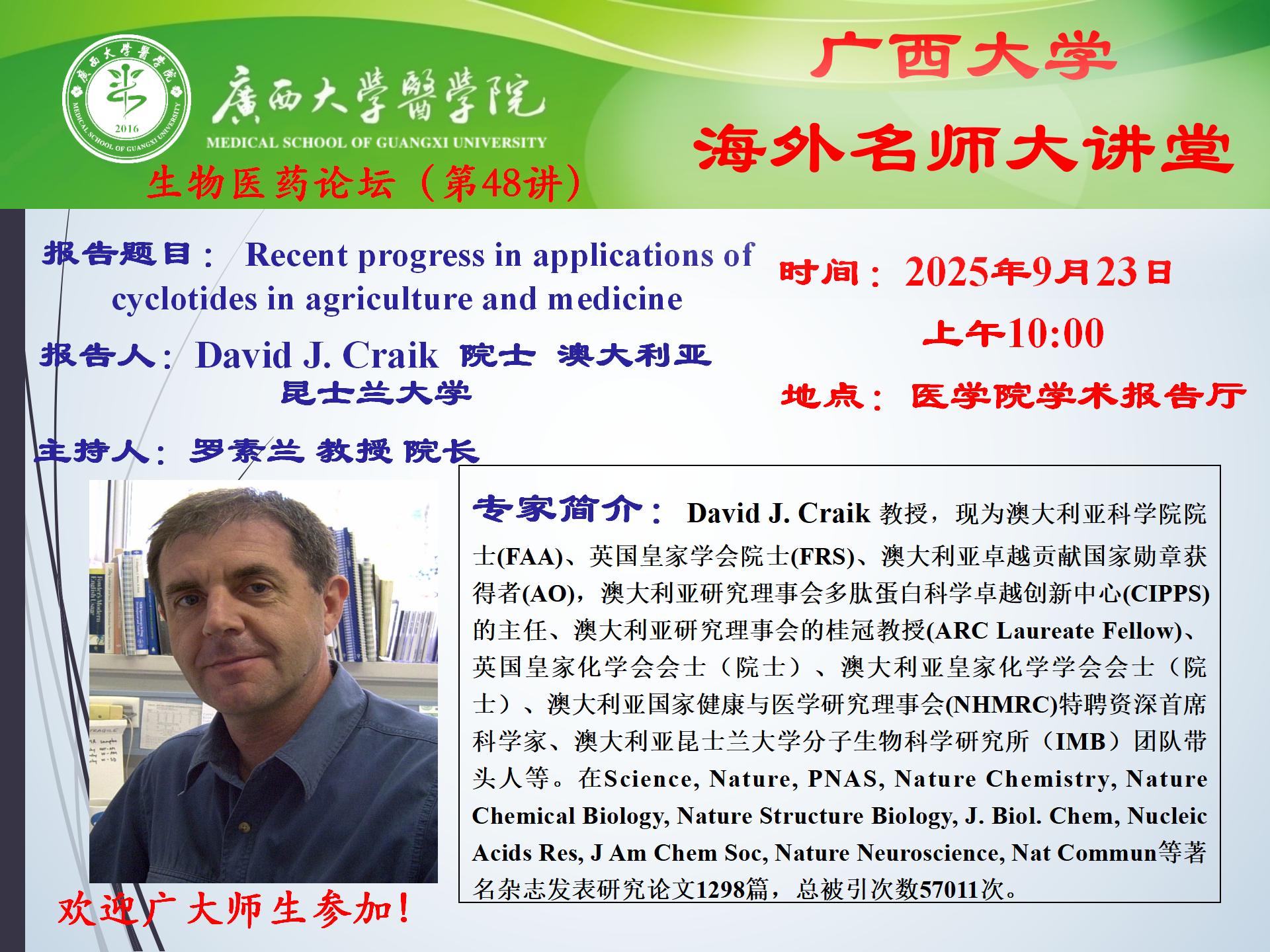英国上市公司365生物医药论坛(第48讲):Recent progress in applications of cyclotides in agriculture and medicine